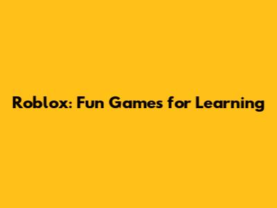 Roblox: Fun Games For Learning