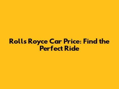 Rolls Royce Car Price: Find The Perfect Ride