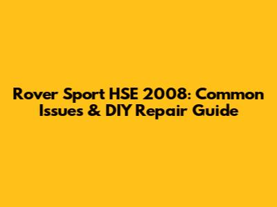 Rover Sport HSE 2008: Common Issues & DIY Repair Guide