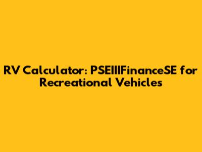 RV Calculator: PSEIIIFinanceSE For Recreational Vehicles
