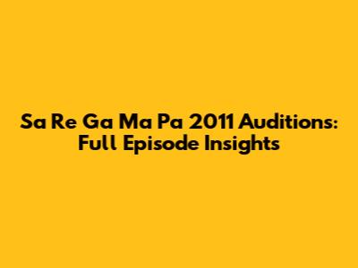 Sa Re Ga Ma Pa 2011 Auditions: Full Episode Insights