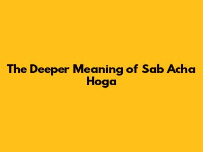 Sab Acha Hoga: What It Really Means