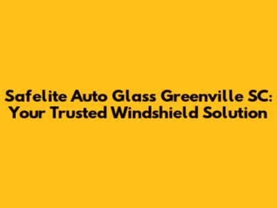 Safelite Auto Glass: Your Greenville SC Windshield Experts