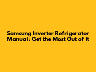 Samsung Inverter Refrigerator Manual: Get The Most Out Of It