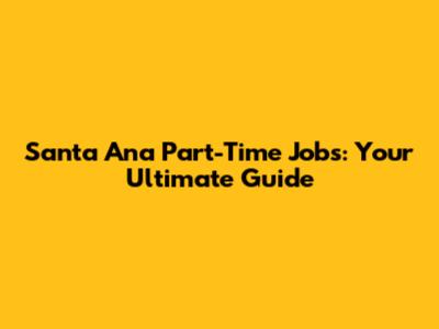 Santa Ana Part-Time Jobs: Your Ultimate Guide