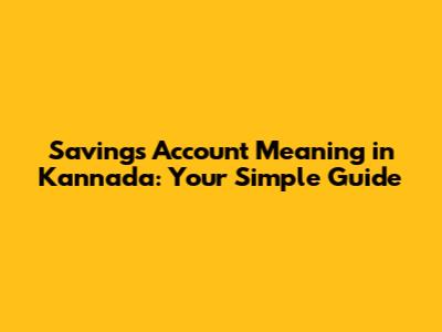 Savings Account Explained In Kannada: A Simple Guide