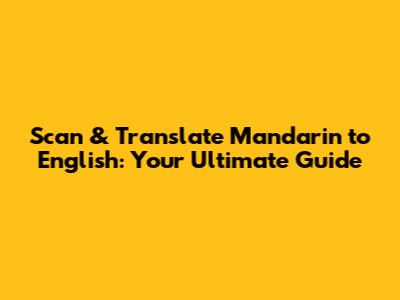 Scan & Translate Mandarin To English: Your Ultimate Guide