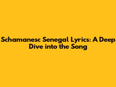 Schamanesc Senegal Lyrics: A Deep Dive Into The Song