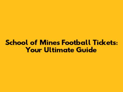 School Of Mines Football Tickets: Your Ultimate Guide