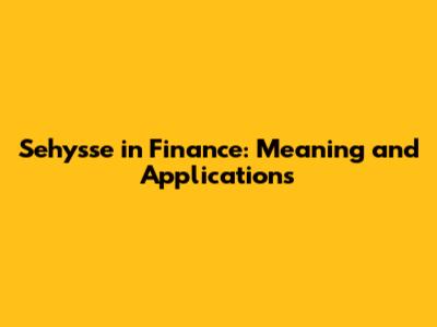 Sehysse In Finance: Meaning And Applications