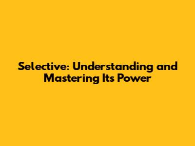 Selective: Understanding And Mastering Its Power