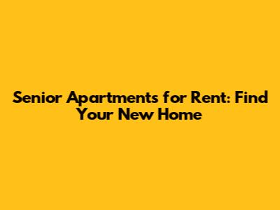 Senior Apartments For Rent: Find Your New Home