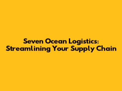 Seven Ocean Logistics: Streamlining Your Supply Chain