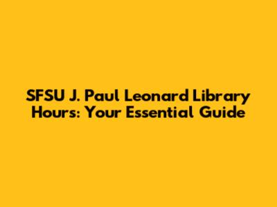 Hey everyone! Are you a student or faculty member at San Francisco State University (SFSU) and need to know the J. Paul Leonard Library hours? Well, you're in the right place! We're diving deep into everything you need to know about the library's operational hours, including special schedules, holiday closures, and how to stay updated. Navigating university life can be a bit of a maze, but figuring out when you can access the library shouldn’t be one of those confusing things. Whether you're a first-year student trying to find a quiet spot to study, a grad student working on a research paper, or a faculty member needing resources, knowing the library hours is absolutely crucial. We'll explore the regular hours, how to find the most current information, and some tips to make the most of your library visits. So, grab a coffee (or tea!), settle in, and let's get you up to speed on all things related to the SFSU library hours.