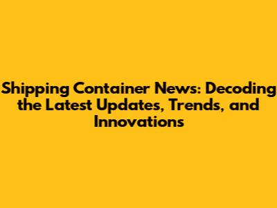 Shipping Container News: Updates, Trends & Innovations