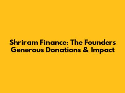 Shriram Finance: The Founder's Generous Donations & Impact