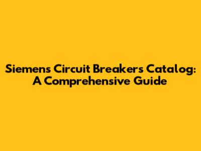 Siemens Circuit Breakers: A Comprehensive Catalog