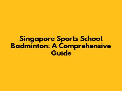 Singapore Sports School Badminton: A Comprehensive Guide