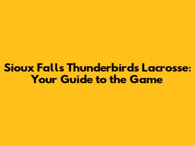 Sioux Falls Thunderbirds Lacrosse: Your Guide To The Game