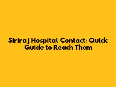 Siriraj Hospital Contact: Quick Guide To Reach Them