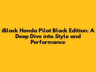 The iBlack Honda Pilot Black Edition is not just an SUV; it's a statement. For those who crave a blend of sophistication and ruggedness, this trim level of the Honda Pilot offers a unique aesthetic and a host of premium features. Let's dive deep into what makes the iBlack Honda Pilot Black Edition so special, exploring its design elements, performance capabilities, interior features, and overall appeal.