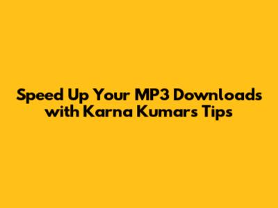 Speed Up Your MP3 Downloads With Karna Kumar's Tips