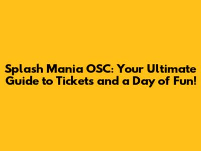 Splash Mania OSC: Your Guide To Tickets & Fun!