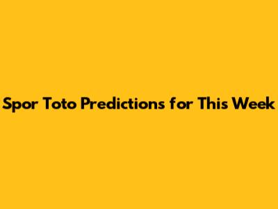 Spor Toto Predictions For This Week