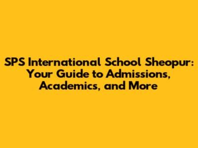 SPS International School Sheopur: Admissions, Academics & More