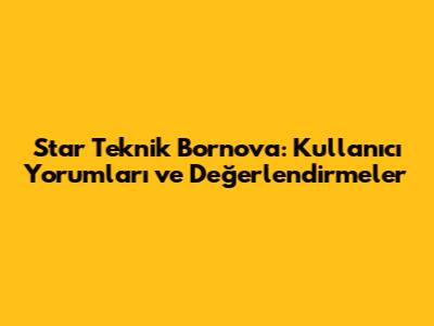 Star Teknik Bornova: Kullanıcı Yorumları Ve Değerlendirmeler