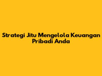 Strategi Jitu Mengelola Keuangan Pribadi Anda