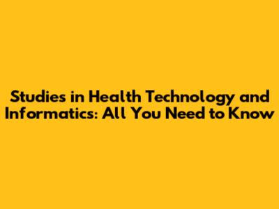 Studies In Health Technology And Informatics: All You Need To Know