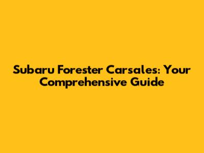 Subaru Forester Carsales: Everything You Need To Know