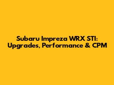 Subaru Impreza WRX STI: Upgrades, Performance & CPM