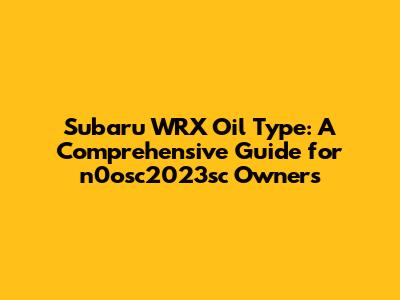 Subaru WRX Oil Type: N0osc2023sc Guide