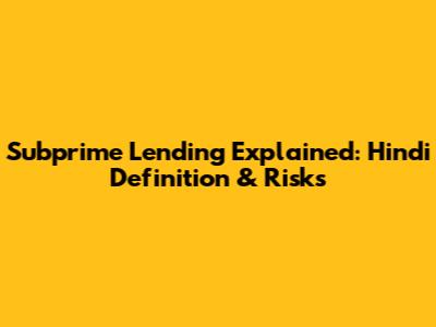 Subprime Lending Explained: Hindi Definition & Risks