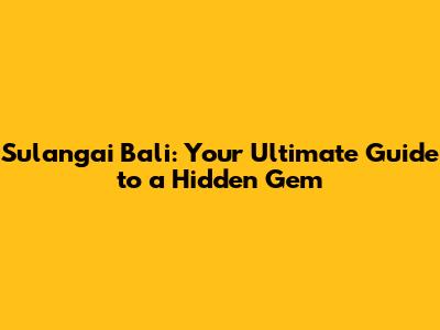 Sulangai Bali: Your Ultimate Guide To A Hidden Gem