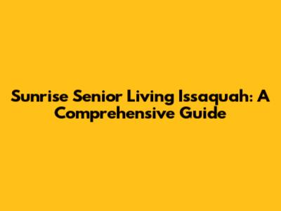 Sunrise Senior Living Issaquah: A Comprehensive Guide