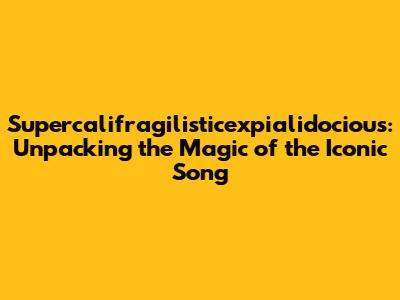 Supercalifragilisticexpialidocious: The Iconic Song Explained