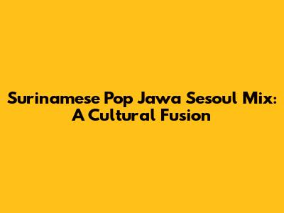 Surinamese Pop Jawa Sesoul Mix: A Cultural Fusion