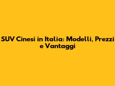 I Migliori SUV Cinesi in Vendita in Italia: Modelli da Non Perdere