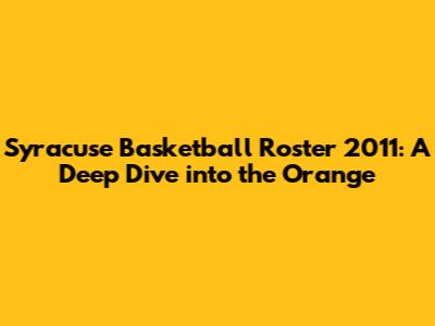Hey basketball fanatics! Let's take a trip down memory lane and dive into the 2011 Syracuse Orange basketball roster. This was a team that had us on the edge of our seats, and for good reason! This article is all about reliving the glory days of the Syracuse Orange, taking a close look at the players, their stats, and what made this team so special. Get ready to reminisce, because we're about to break down everything you need to know about the 2011 squad. We will explore the key players, their individual performances, and the overall impact they had on the team's success. If you're a die-hard Orange fan or just a casual basketball enthusiast, this is your chance to relive the excitement and appreciate the talent that graced the court that season. So, let's get started and celebrate the legacy of the 2011 Syracuse basketball team!