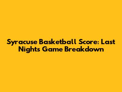 Syracuse Basketball Score: Last Night's Game Breakdown