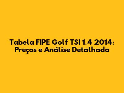Tabela FIPE Golf TSI 1.4 2014: Preços E Análise