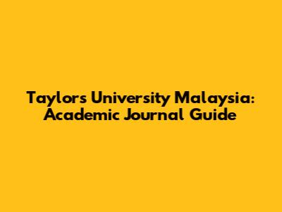 Taylor's University Malaysia: Academic Journal Guide
