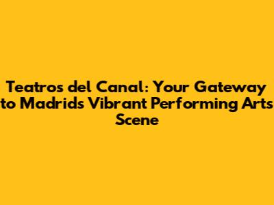 Teatros Del Canal: Your Guide To Madrid's Performing Arts
