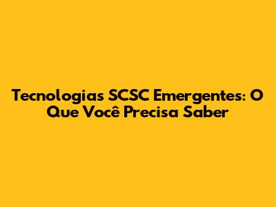 Tecnologias SCSC Emergentes: O Que Está Acontecendo?