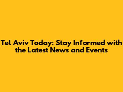 Tel Aviv Today: Updates On The Latest News And Events