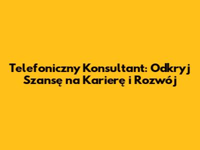 Praca jako telefoniczny konsultant mo偶e by膰 艣wietnym startem dla Twojej kariery. Pozwoli Ci rozwija膰 umiej臋tno艣ci komunikacyjne, zdobywa膰 do艣wiadczenie w obs艂udze klienta i budowa膰 cenne relacje. Pami臋taj, aby by膰 cierpliwym, systematycznym i konsekwentnym w swoich dzia艂aniach, a sukces z pewno艣ci膮 przyjdzie!