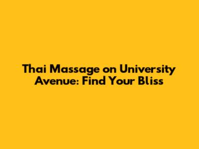 Thai Massage On University Avenue: Find Your Bliss